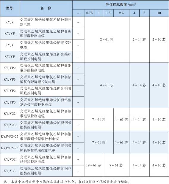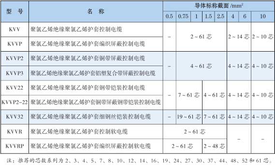 6.1 Technical performance table KVV type/KYJV control cable