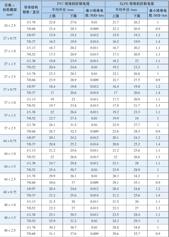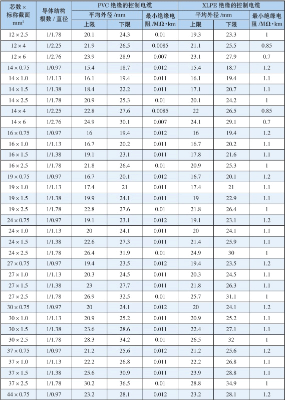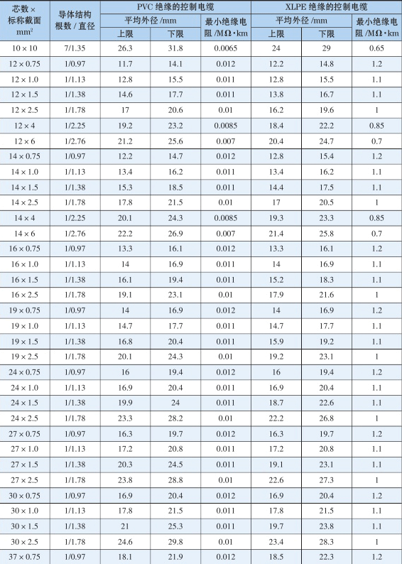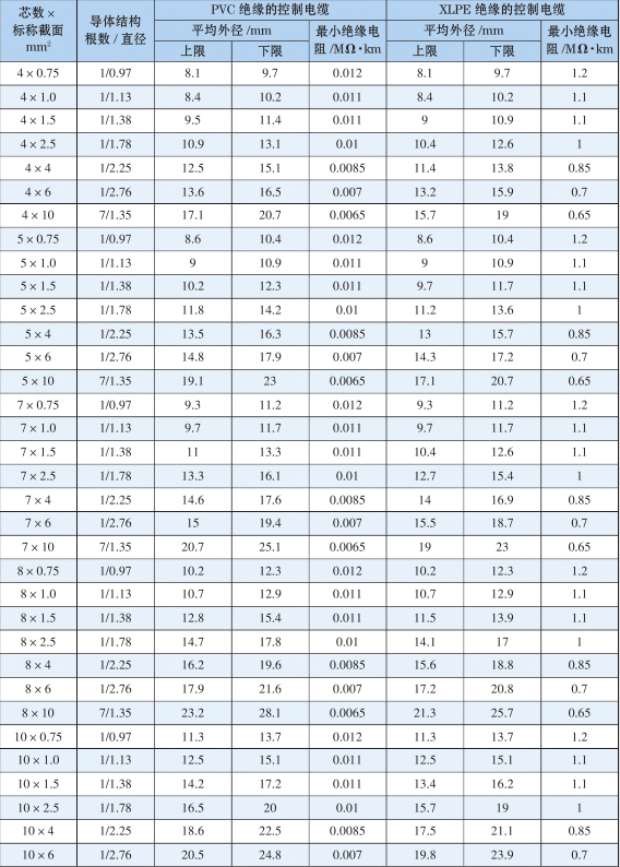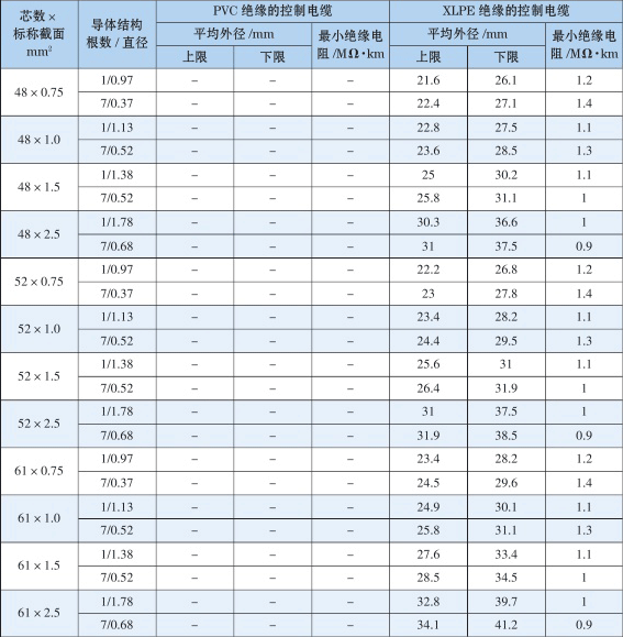 6.2 KVVP/KYJVP型控制电缆技术性能表