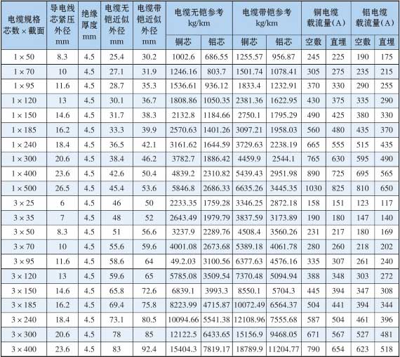 8.4 YJV/YJV22(YJLV/YJLV22)型26/35kV挤包电力电缆规格性能表