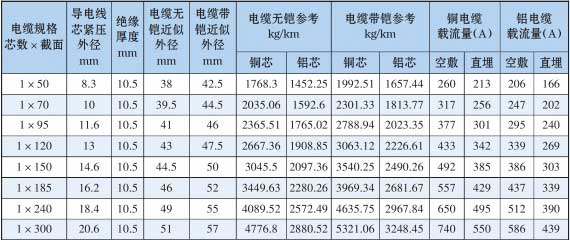 8.3 YJV/YJV22型8.7/15kV挤包电力电缆规格性能表